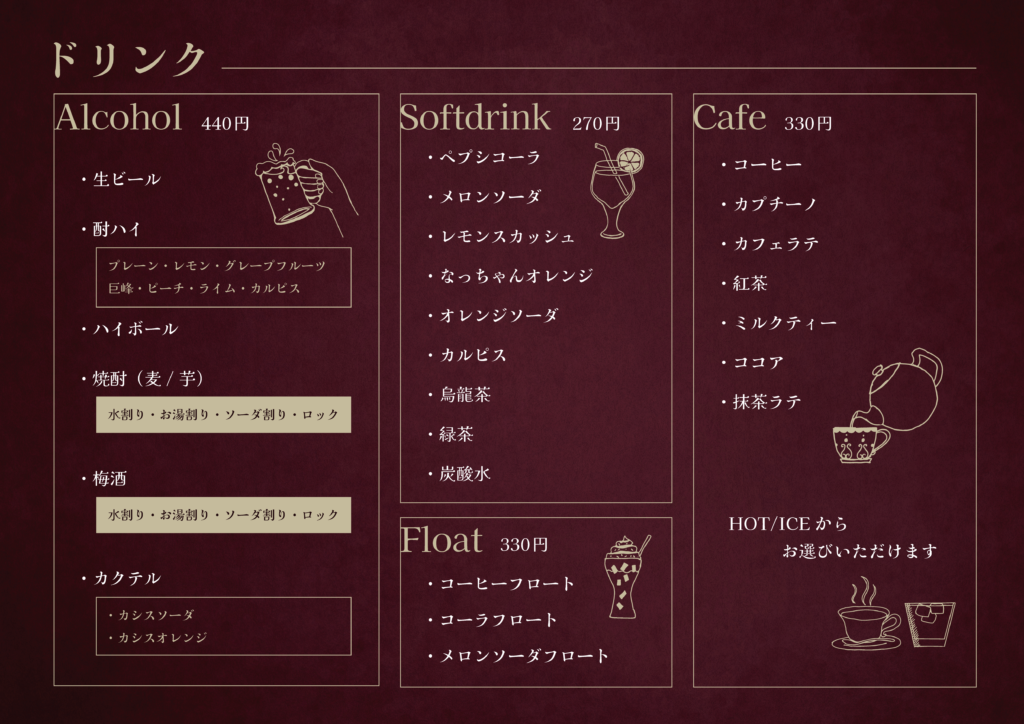 ※メニュー内容は予告なく変更となる場合がございます。あらかじめご了承ください。